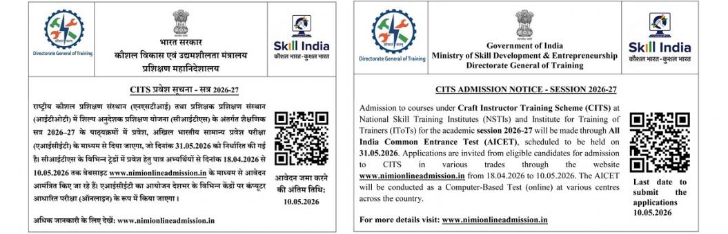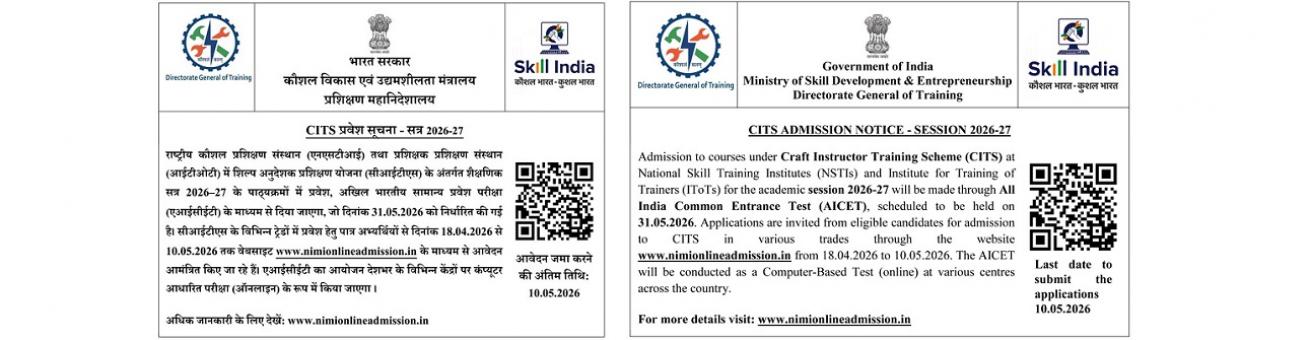 1. Craftsmen Training Scheme (CTS) - Dress Making, Computer Operator & Programming Assistant, Cosmetology, Architectural Draftsmanship Trades.